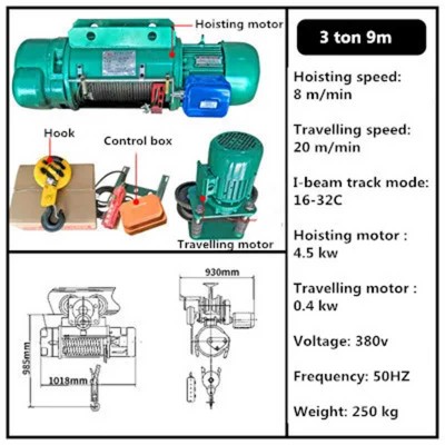 3 Ton Low Headroom Electric Wire Rope Hoist for Compact Spaces
